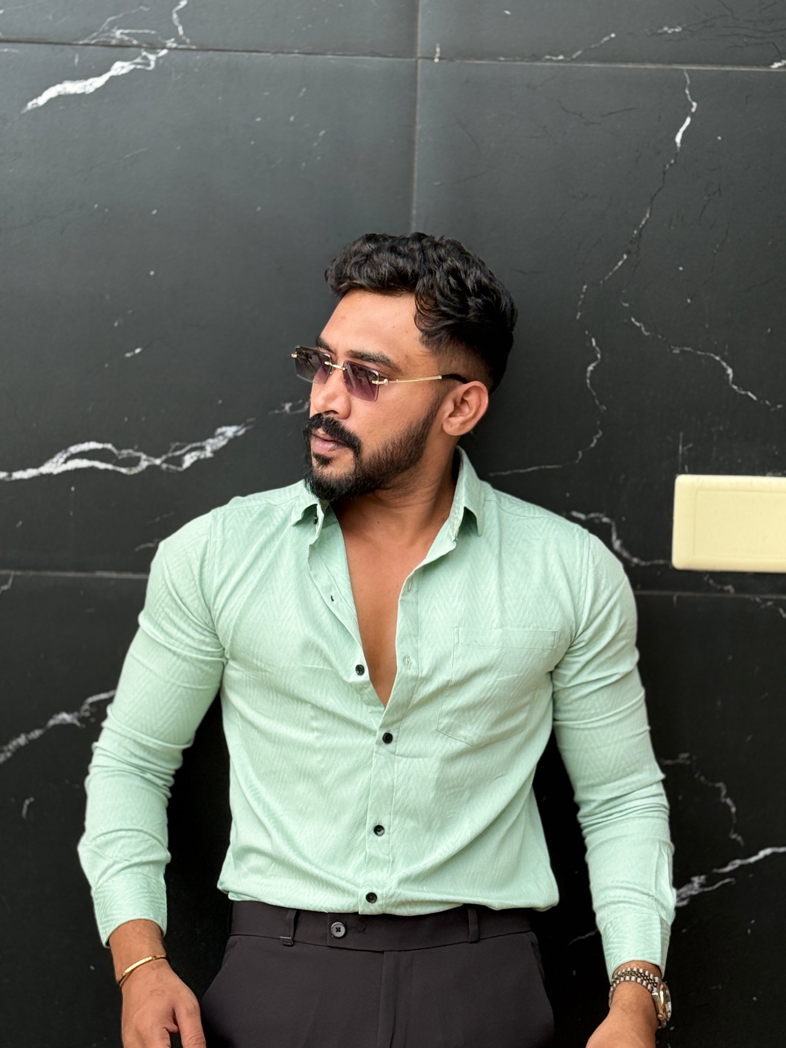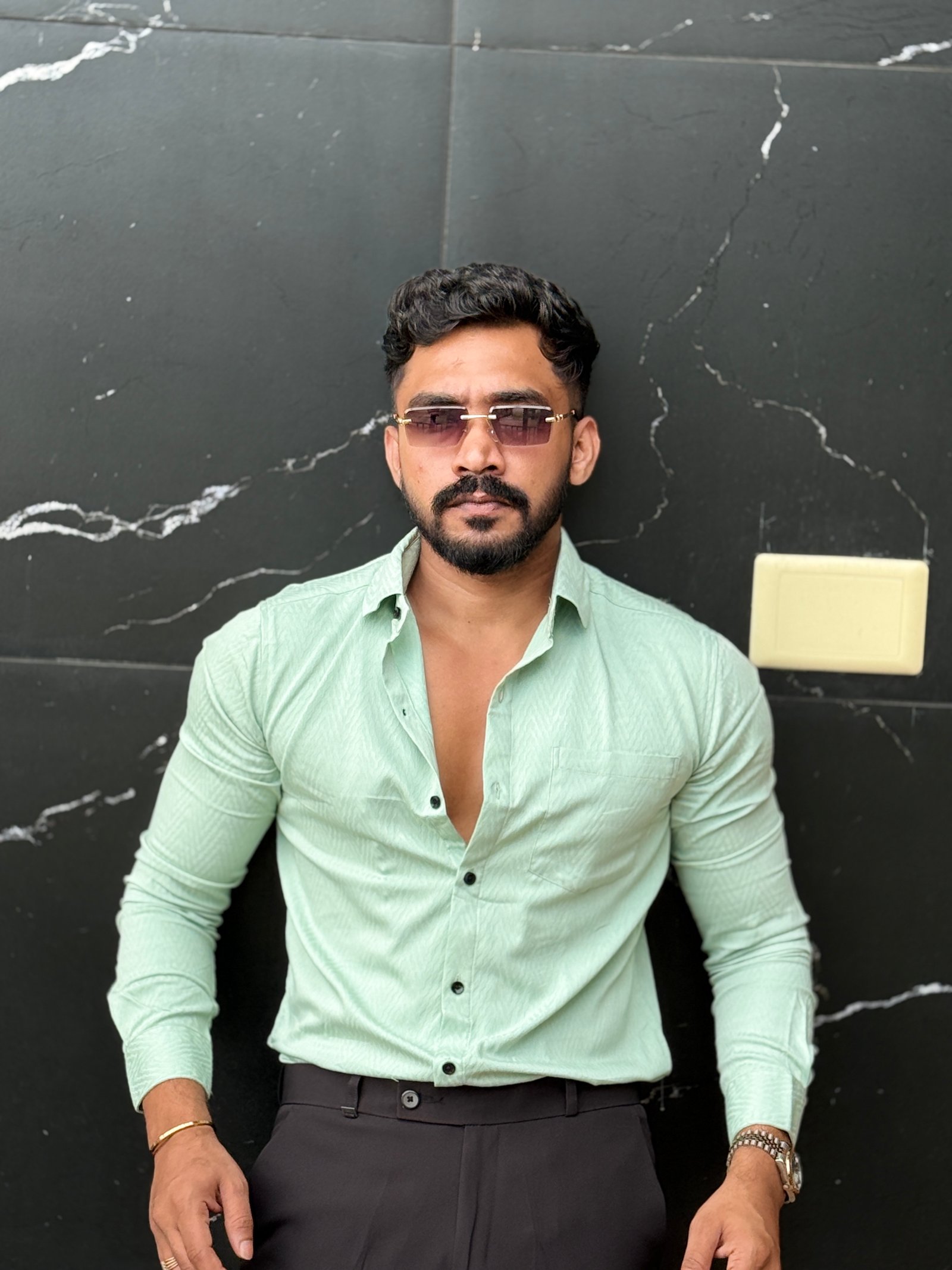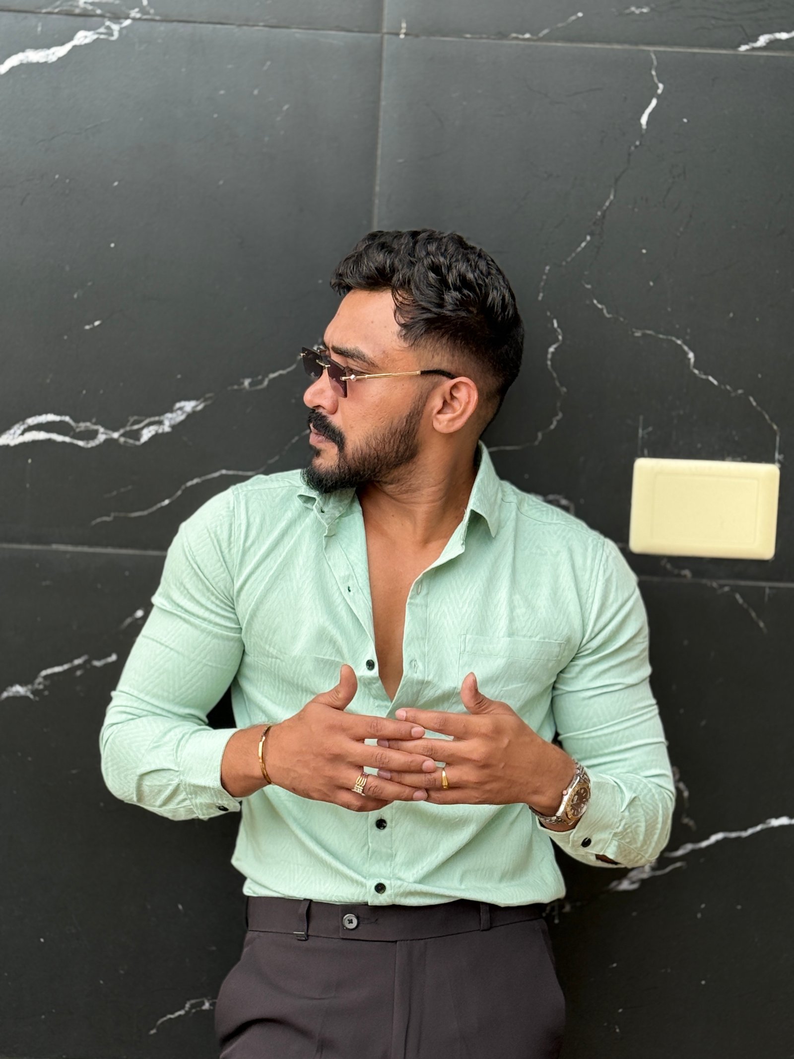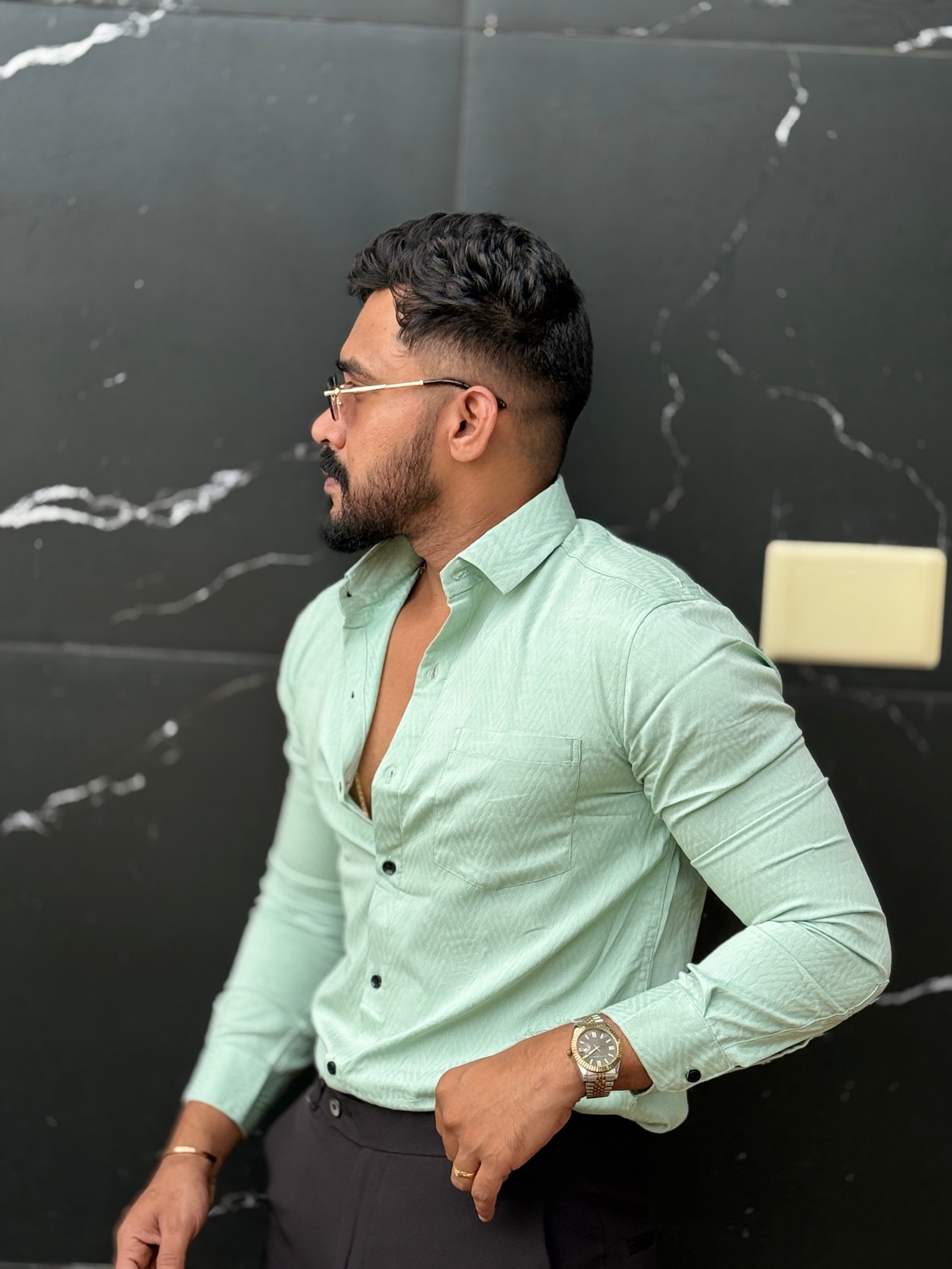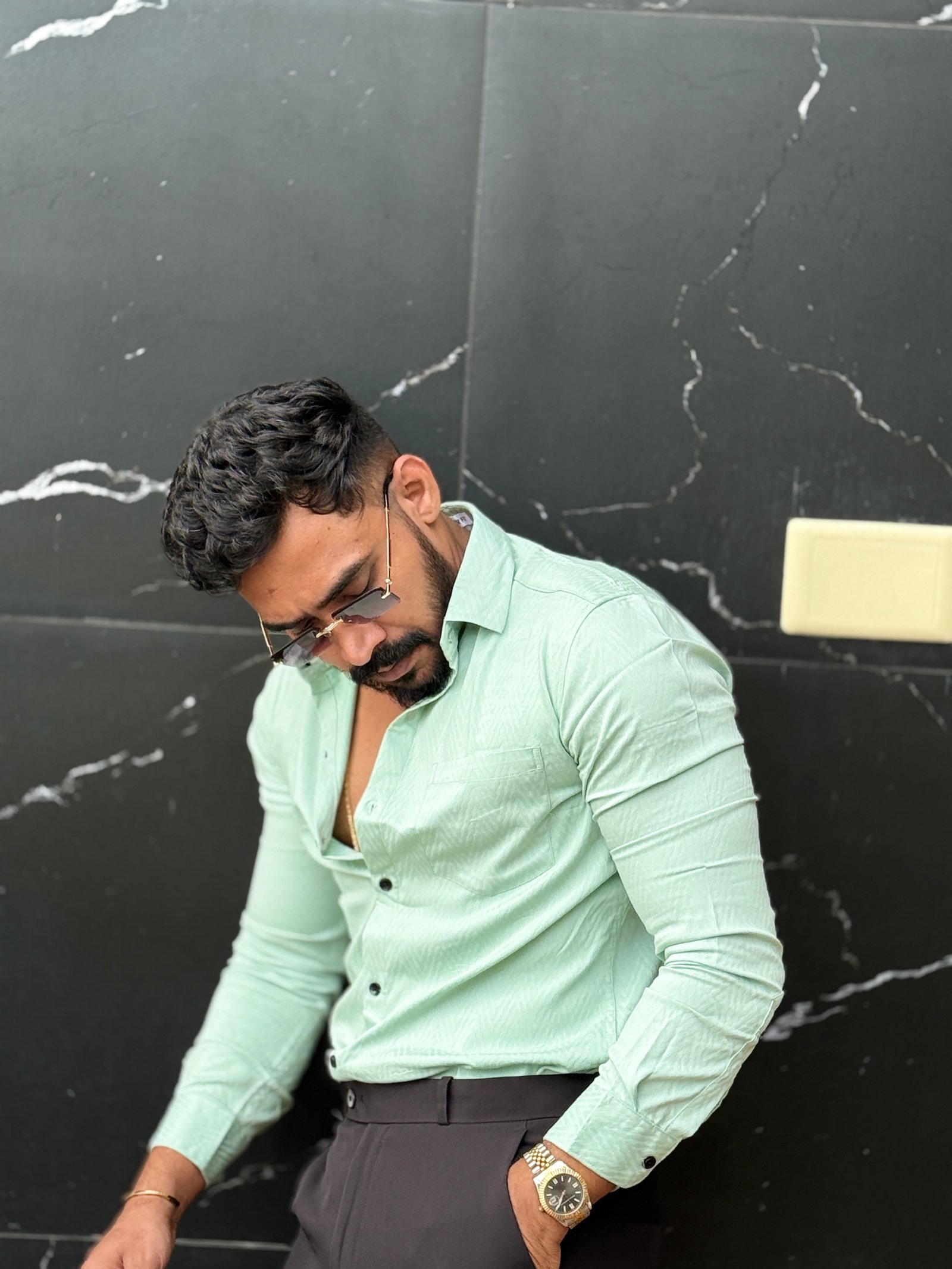 • "Cool Tone, Sharp Look – Aqua Blue Shirt."