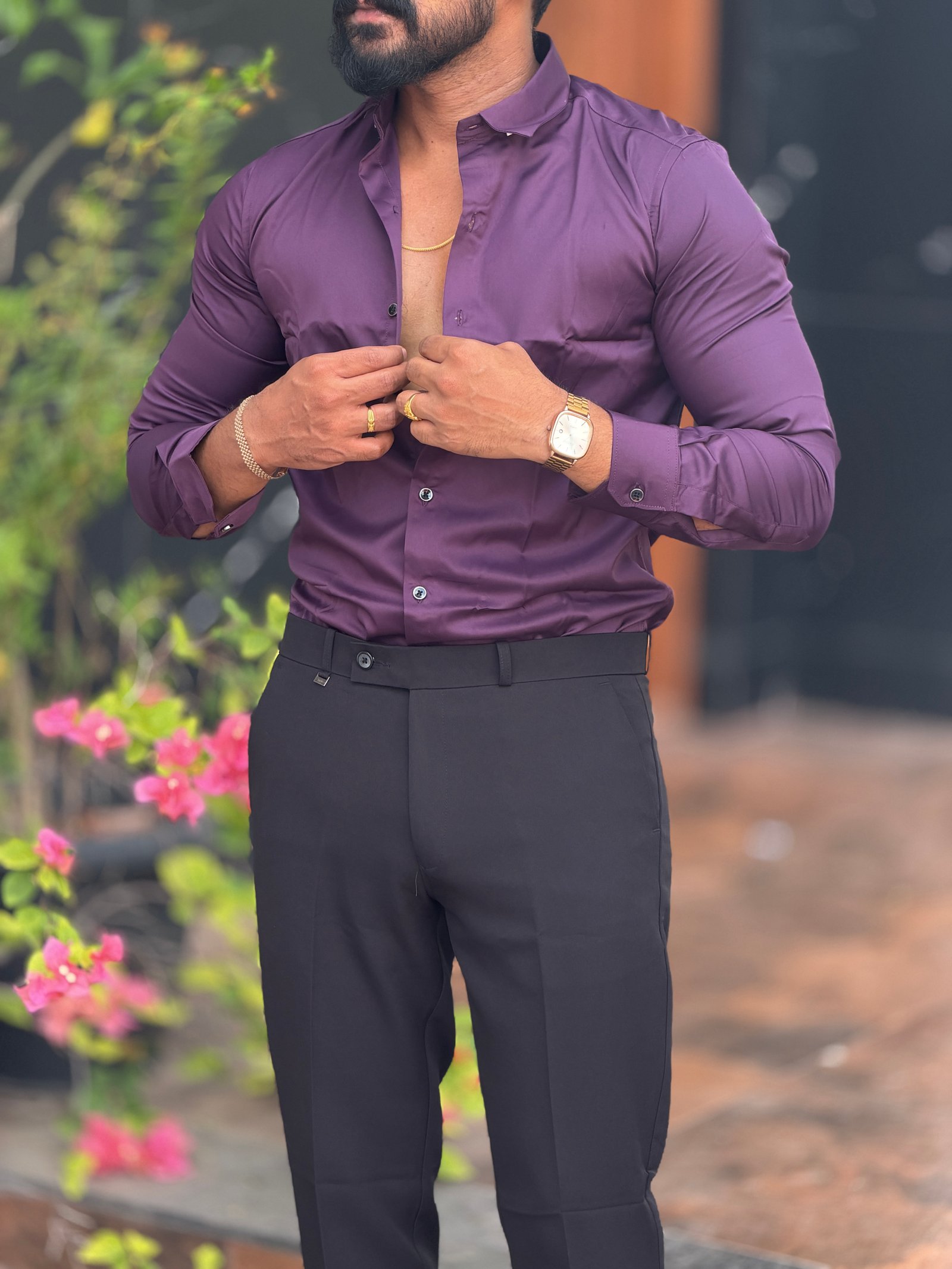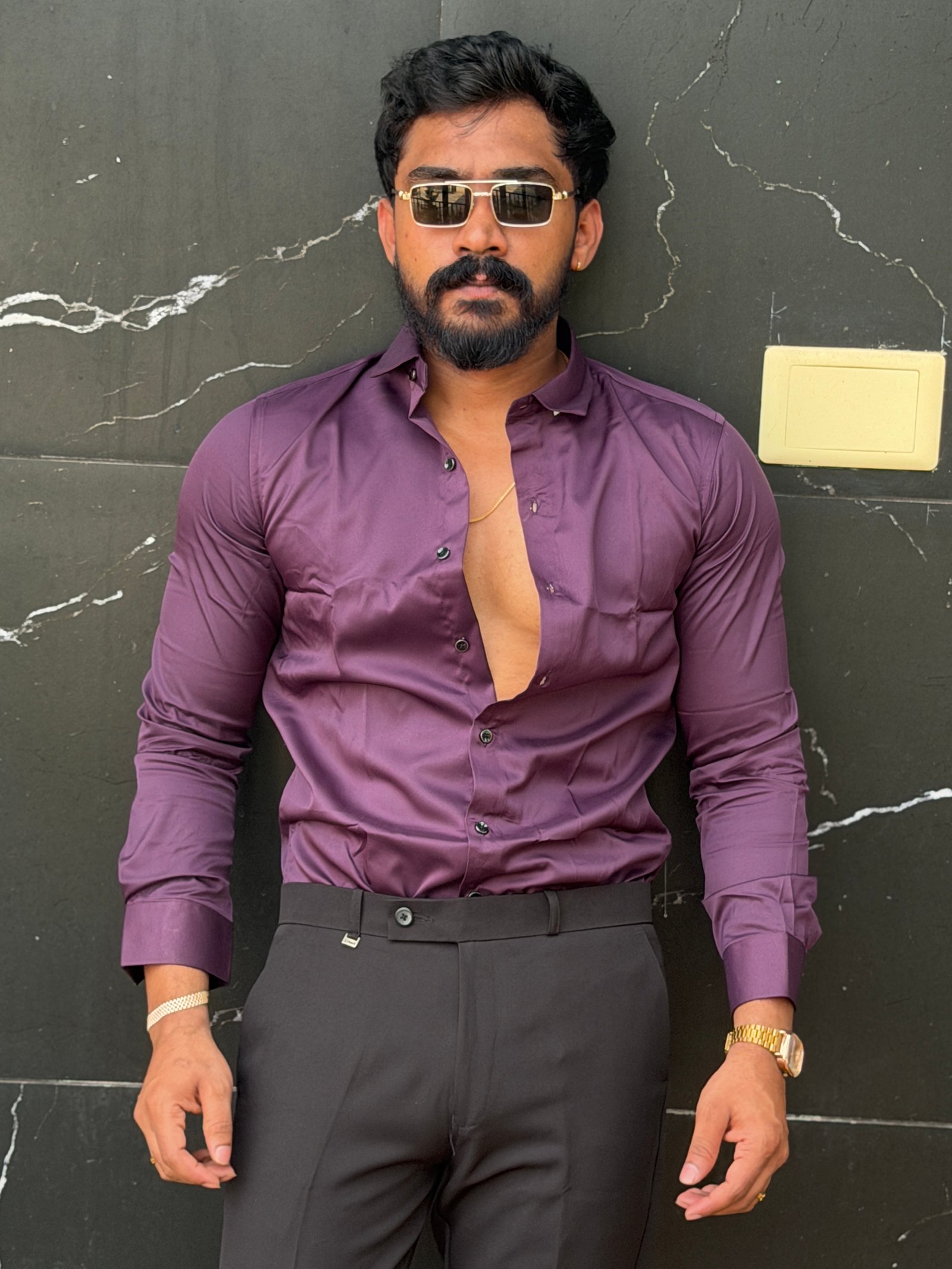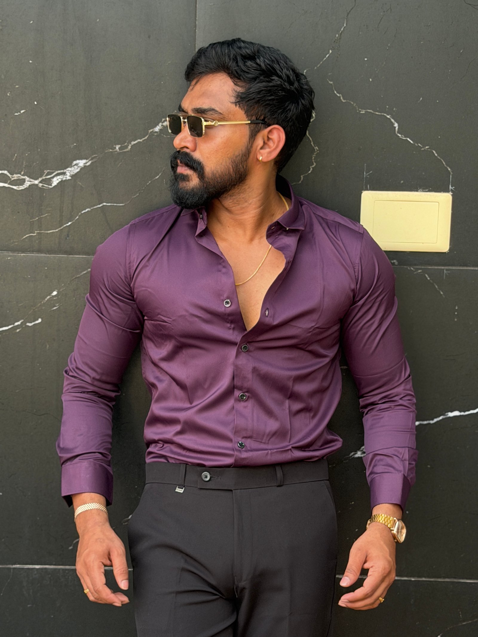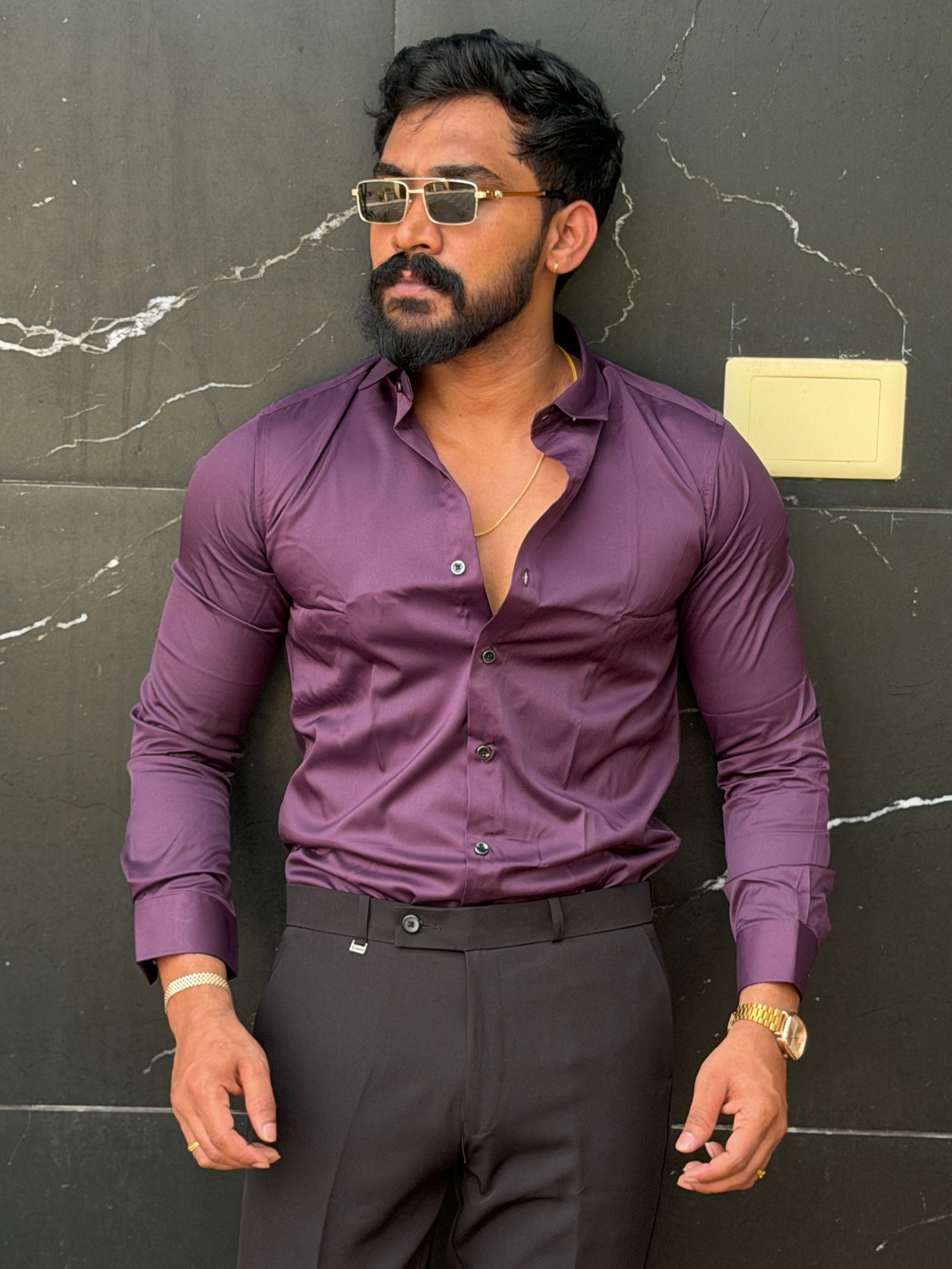 Wine Satin Party Wear Shirt